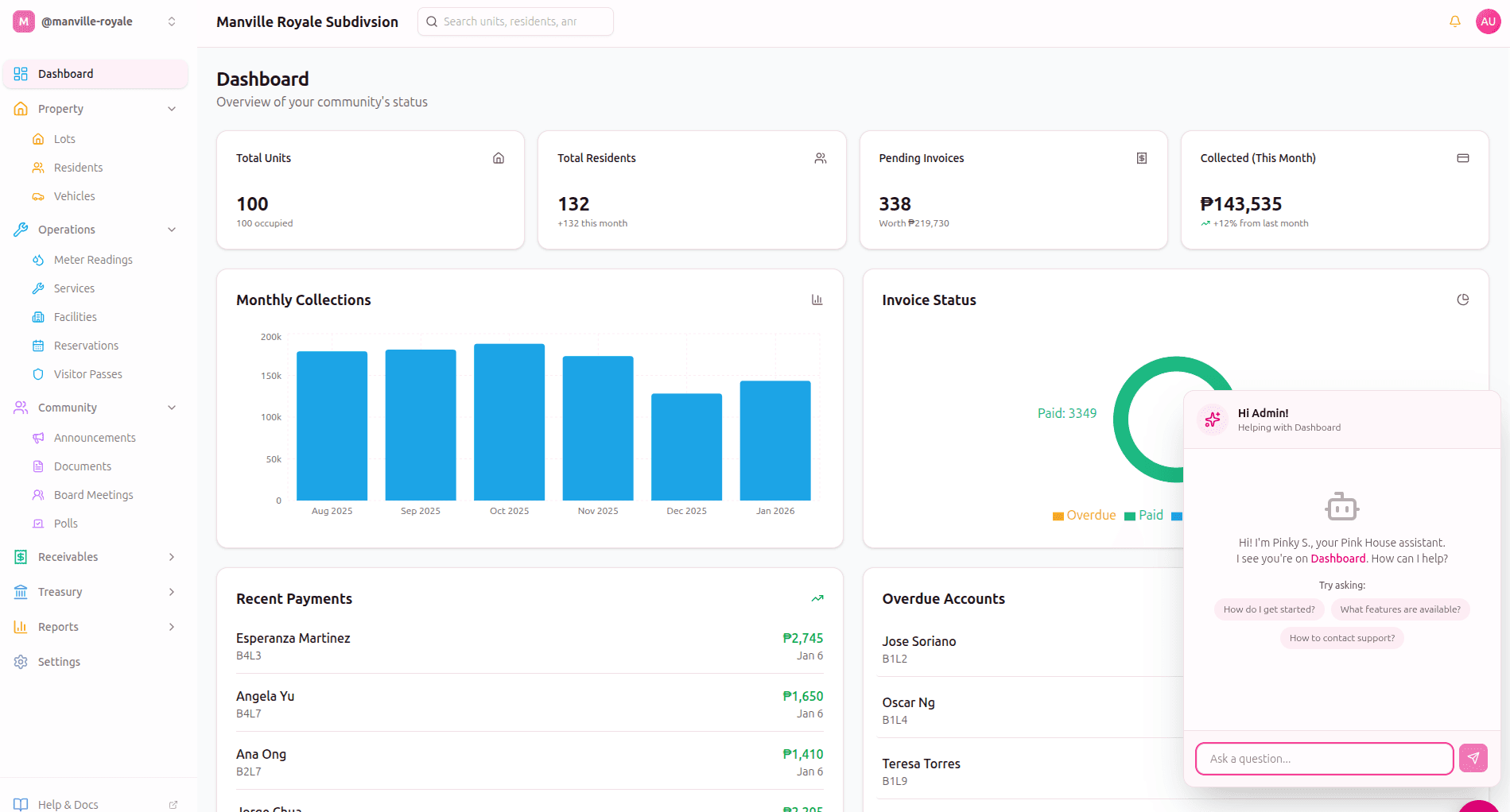 From dues collection to communication, Pink House makes it simple for HOAs and residents to stay connected and organized.